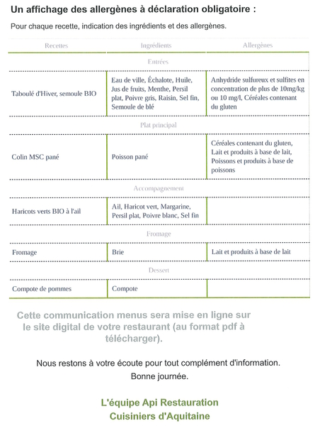 Api Restauration va utiliser un nouveau logiciel qui comprend un nouvel affichage des menus.