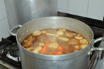 A la cuisine : Marie-Jeanne, à l’origine de la recette, assistée de Dominique, notre cuisinier chef d’orchestre.